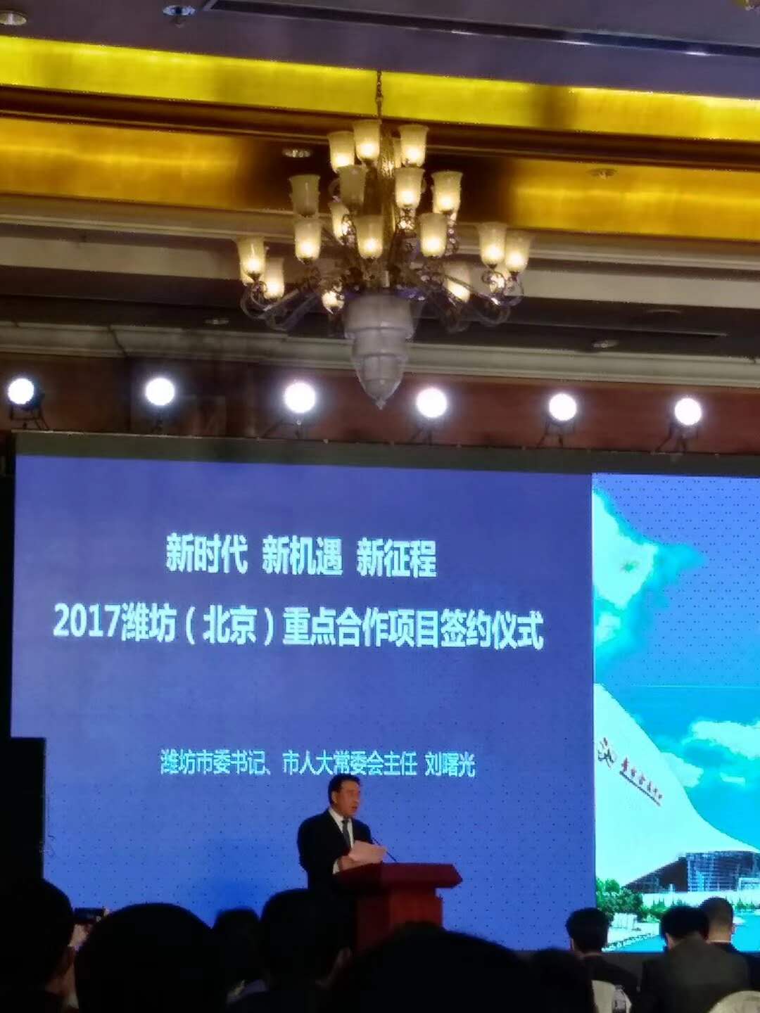 11月29日上午,潍坊市人民市委、市政府“新时代、新机遇、新征程,2017潍坊(北京)重点合作项目签约仪式”在京举行。